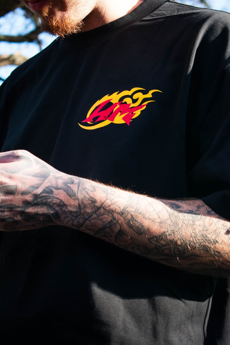 -Premium, extra heavy, 100% carded cotton -Boxy, relaxed fit -Wide neck ribbing -Preshrunk -Screen printed front and back